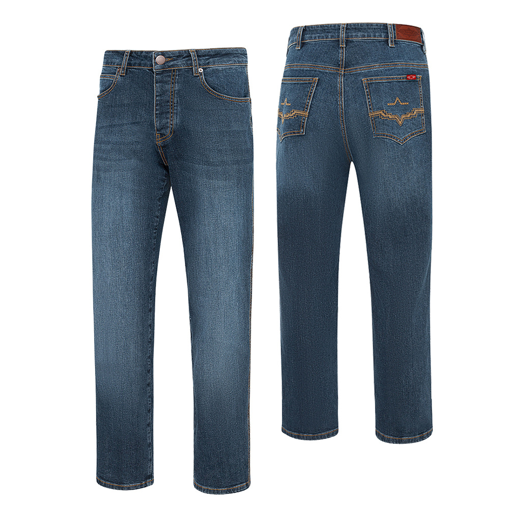 Stylové robustní jeansy Derrick klasického střihu v modré barvě a sepraného vzhledu spojují tradici s moderními materiály. Zdobené efektními výšivkami na zadních kapsách a kontrastním obšitím lemů. Pohodlné nošení zajistí příměs elastanu.