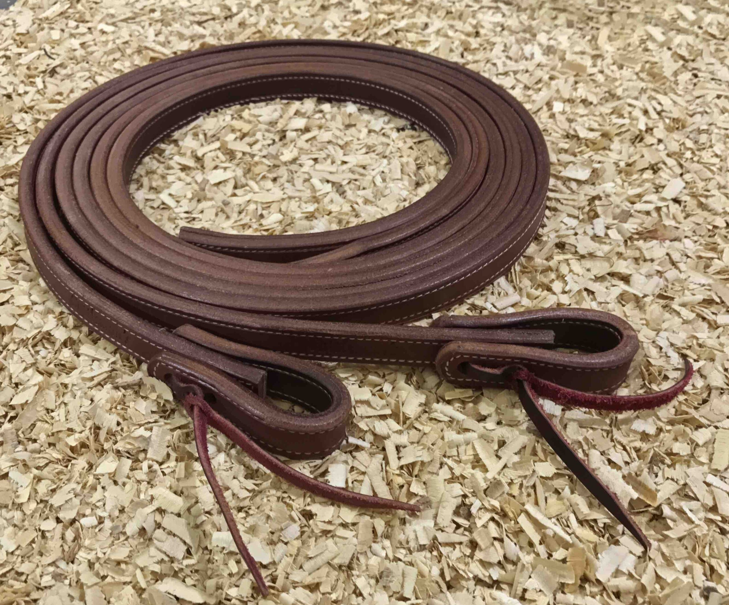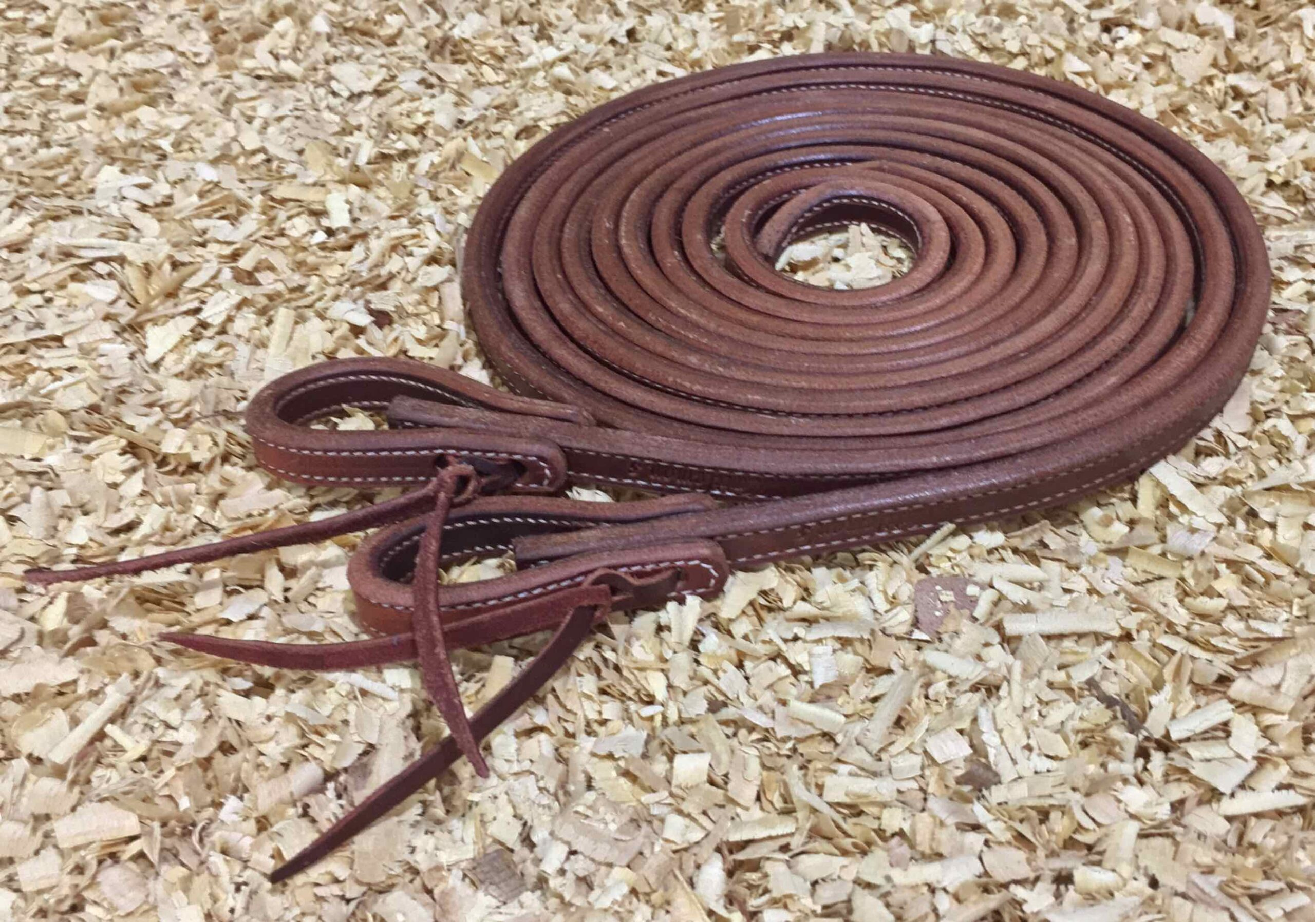 Kožené westernové otěže Cattleman´s Yellowstone zdvojené (tloušťka dvou vrstev kůže), prošité, velmi pevné, přesto dobře ohebné, pružné a padnoucí do ruky.