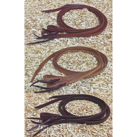 Kožené westernové otěže vyrobeny z kvalitní kůže Sadesa, pevné, ale přitom dobře ohebné a padnoucí do ruky.