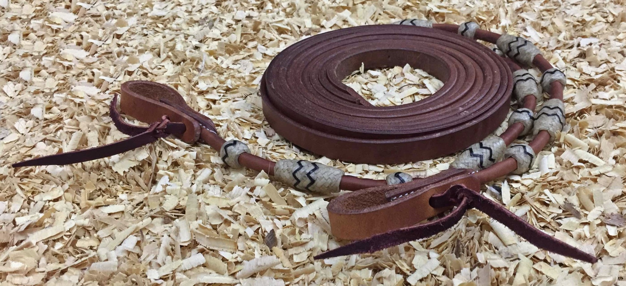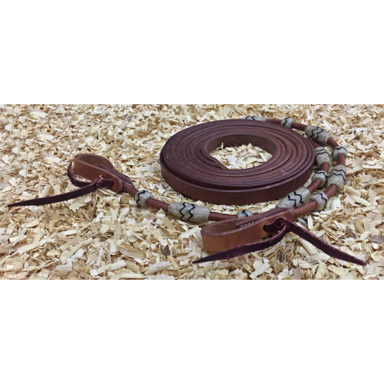 Zdobené kožené westernové otěže GVR částečně kruhového průřezu, velmi pevné, přesto dobře ohebné, pružné a padnoucí do ruky.