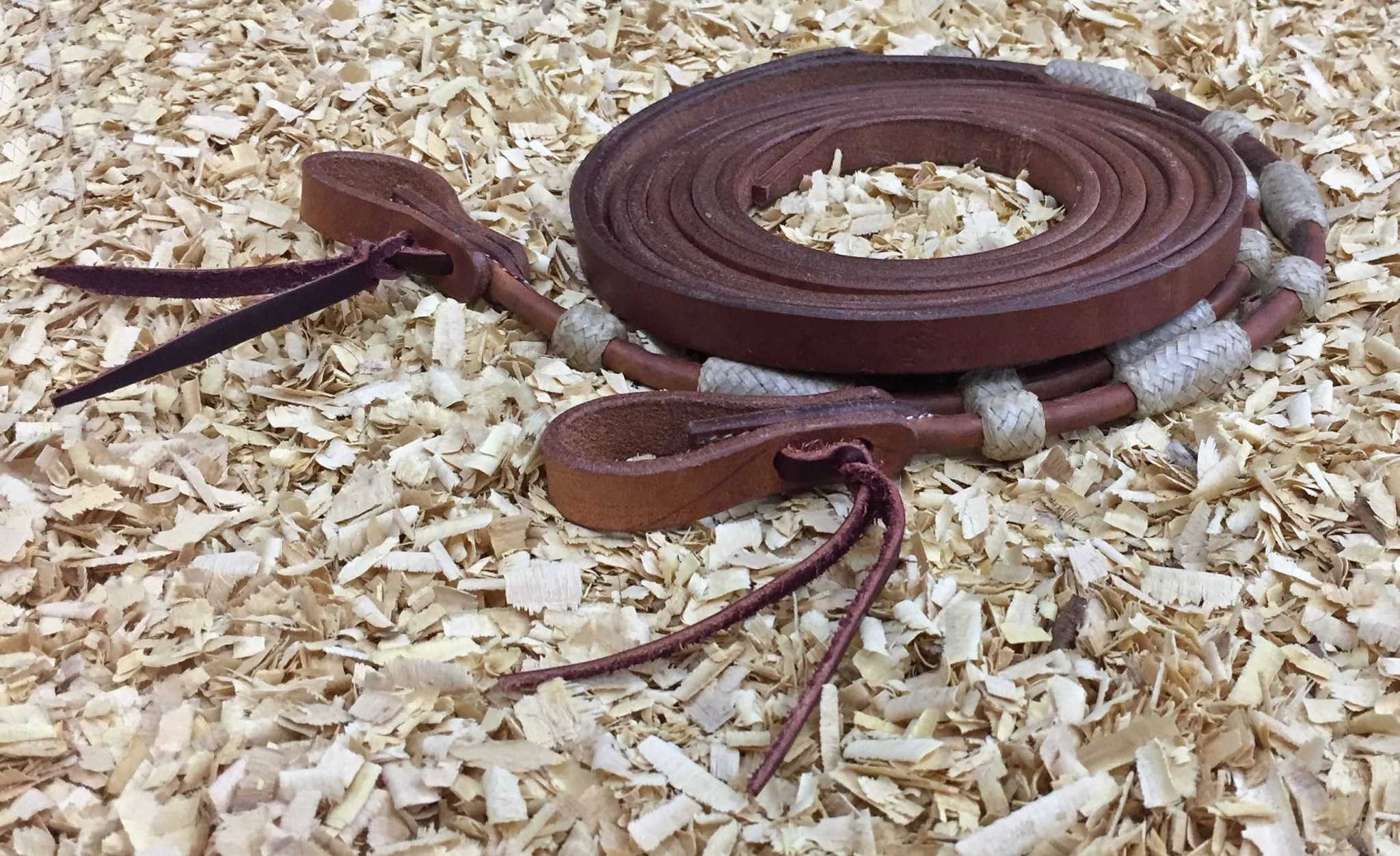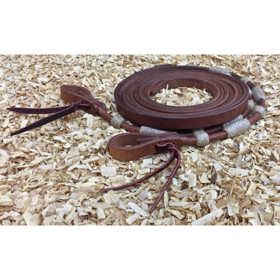 Zdobené kožené westernové otěže GVR částečně kruhového průřezu, velmi pevné, přesto dobře ohebné, pružné a padnoucí do ruky.