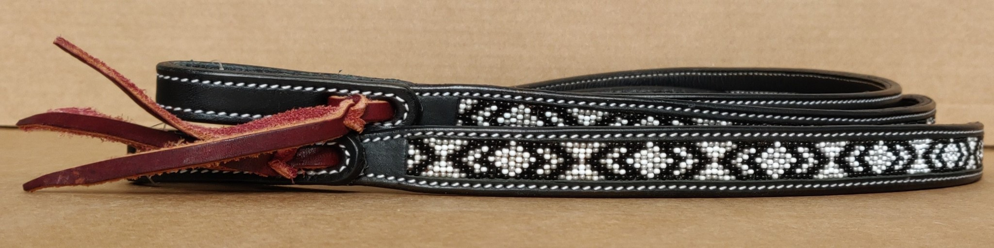 Kožené westernové otěže GVR zdobené perličkami, zdvojené a prošité, velmi pevné, přesto dobře ohebné, pružné a padnoucí do ruky.
