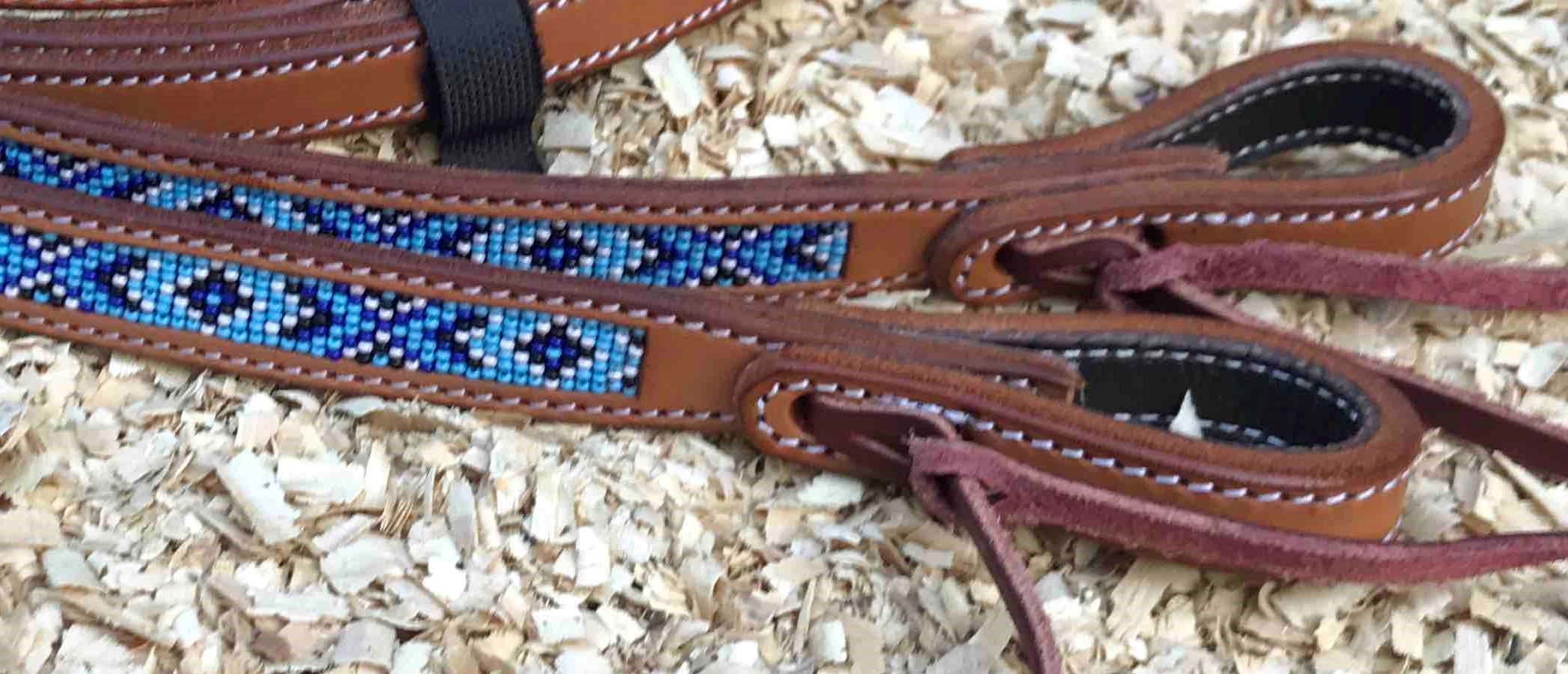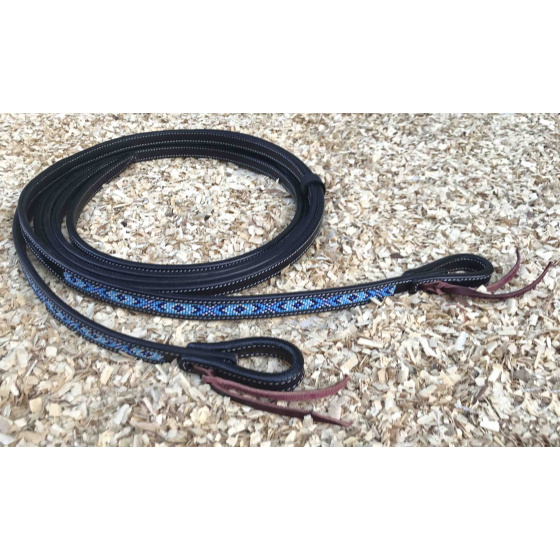Kožené westernové otěže GVR zdobené perličkami, zdvojené a prošité, velmi pevné, přesto dobře ohebné, pružné a padnoucí do ruky.