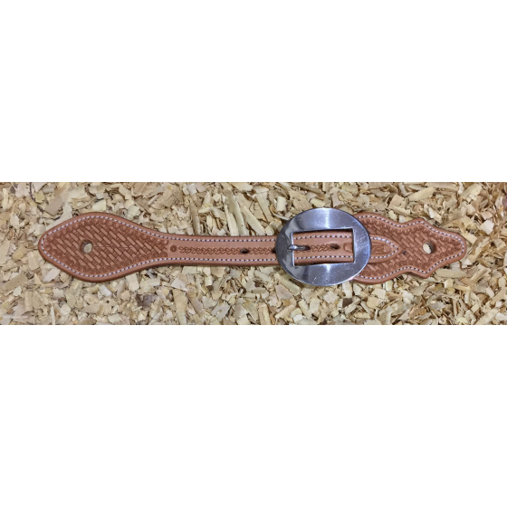 Westernové kožené řemínky k ostruhám z vysokojakostní kůže zdobené basketem. Nerezové kování.