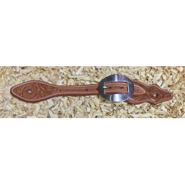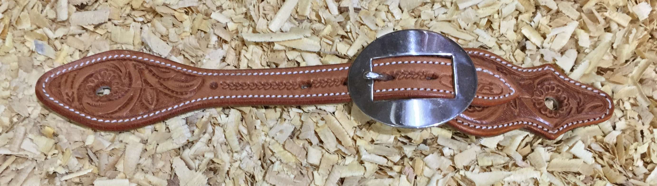 Westernové kožené řemínky k ostruhám z vysokojakostní kůže zdobené květinovým vzorem. Nerezové kování.