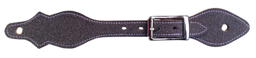 Hladké westernové kožené řemínky k ostruhám z vysokojakostní kůže zdobené barevnou kůží s třpytivým povrchem, obšité a podložené telecí kůží. Nerezové kování.