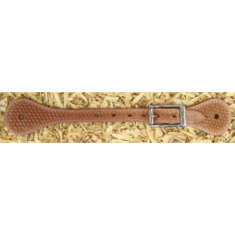 Westernové kožené řemínky k ostruhám z vysokojakostní kůže zdobené basketem, obšité a podložené telecí kůží. Nerezové kování.