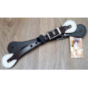 Westernové hladké kožené řemínky k ostruhám z vysokojakostní kůže zdobené na koncích chlupatou hovězí kůží. Nerezové kování.