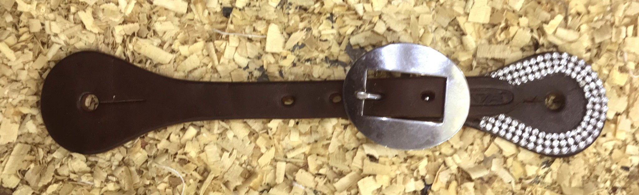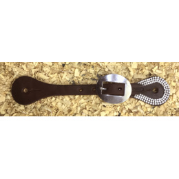 Westernové kožené řemínky k ostruhám z vysokojakostní kůže zdobené barevnými kamínky, obšité a podložené telecí kůží. Nerezové kování.