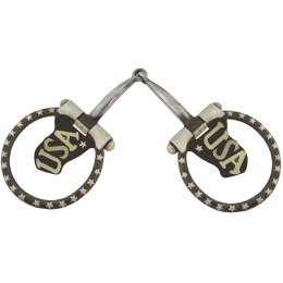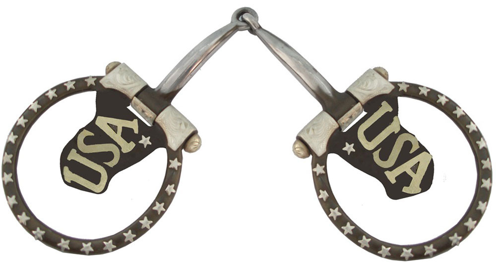 Antik westernové udidlo se stříbrným zdobením v designu USA vlajky.