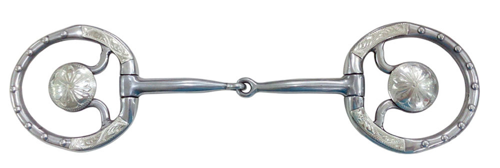 Nerezové westernové udidlo zdobené stříbrným gravírováním, nýty a končakem.