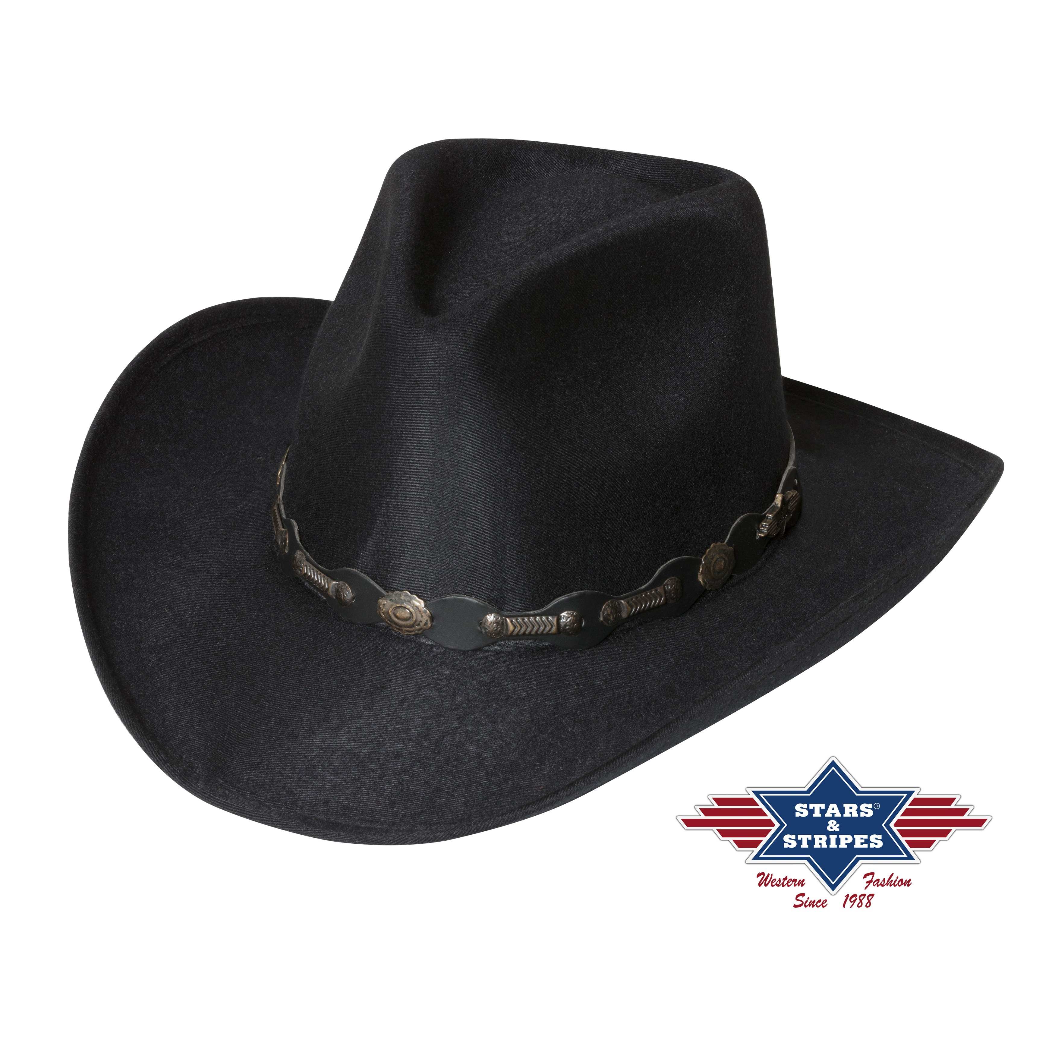 Westernový klobouk v mexickém stylu, ozdobný řemínek s končaky, pohodlný k nošení díky měkké vnitřní pásce.