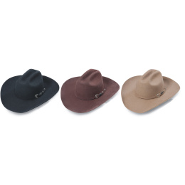 Klasický plstěný westernový klobouk s řemínkem zdobeným malou kovovou přezkou. Uvnitř podšívka a nastavitelný pásek pro dopasování velikosti.
