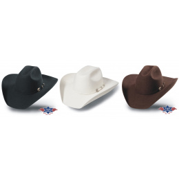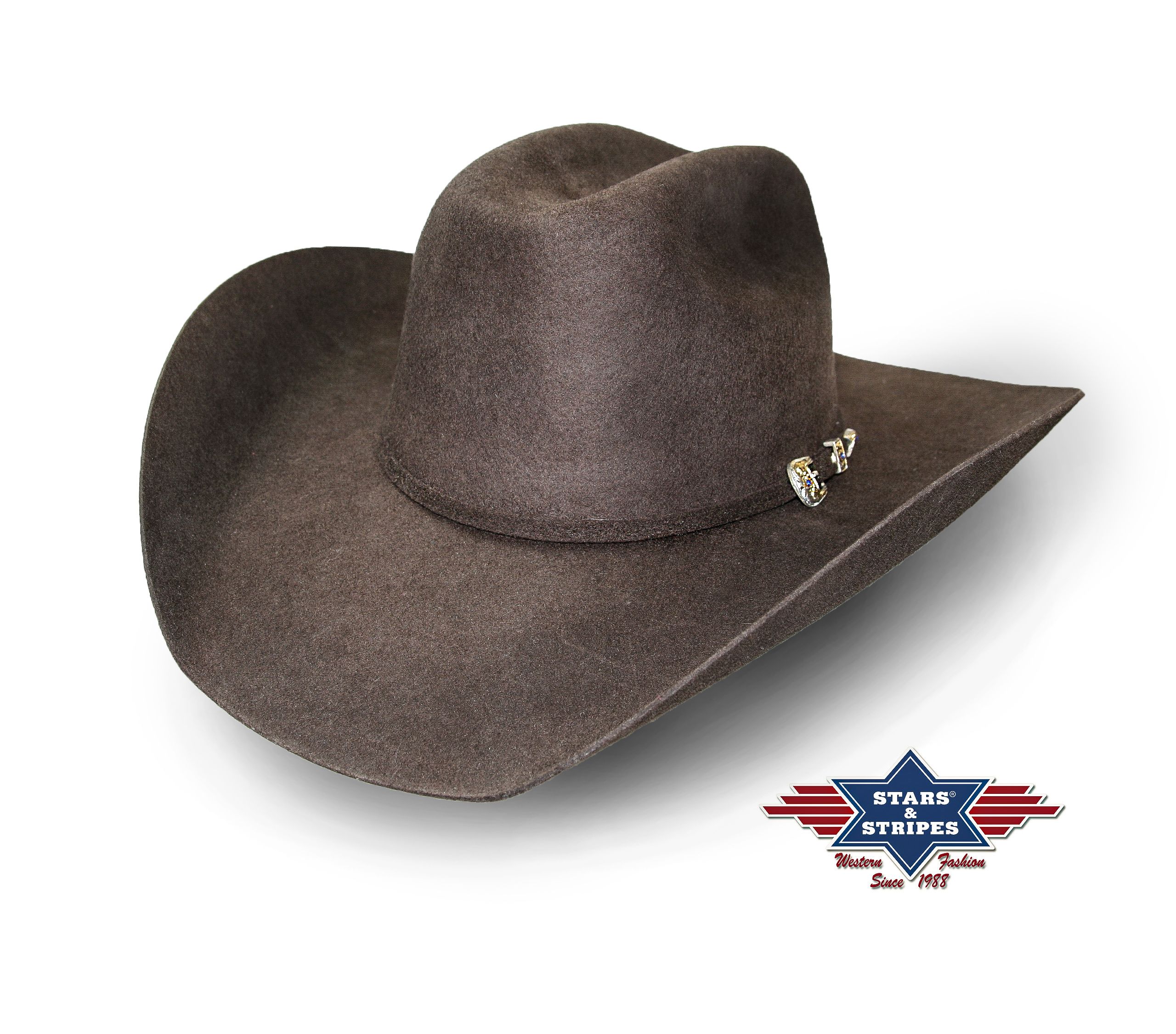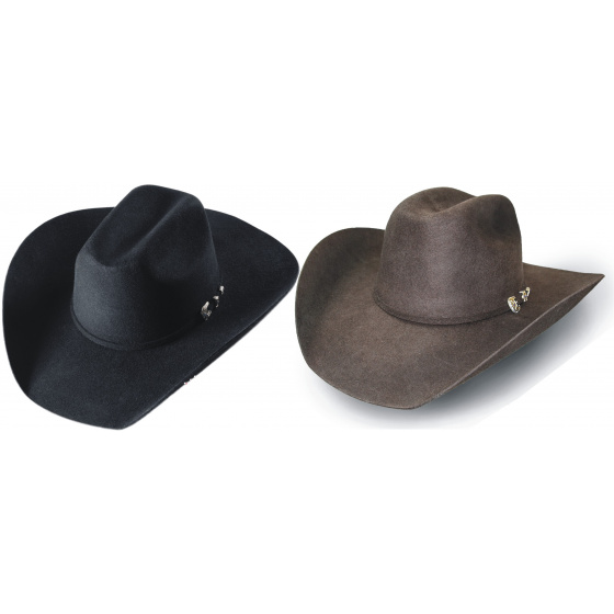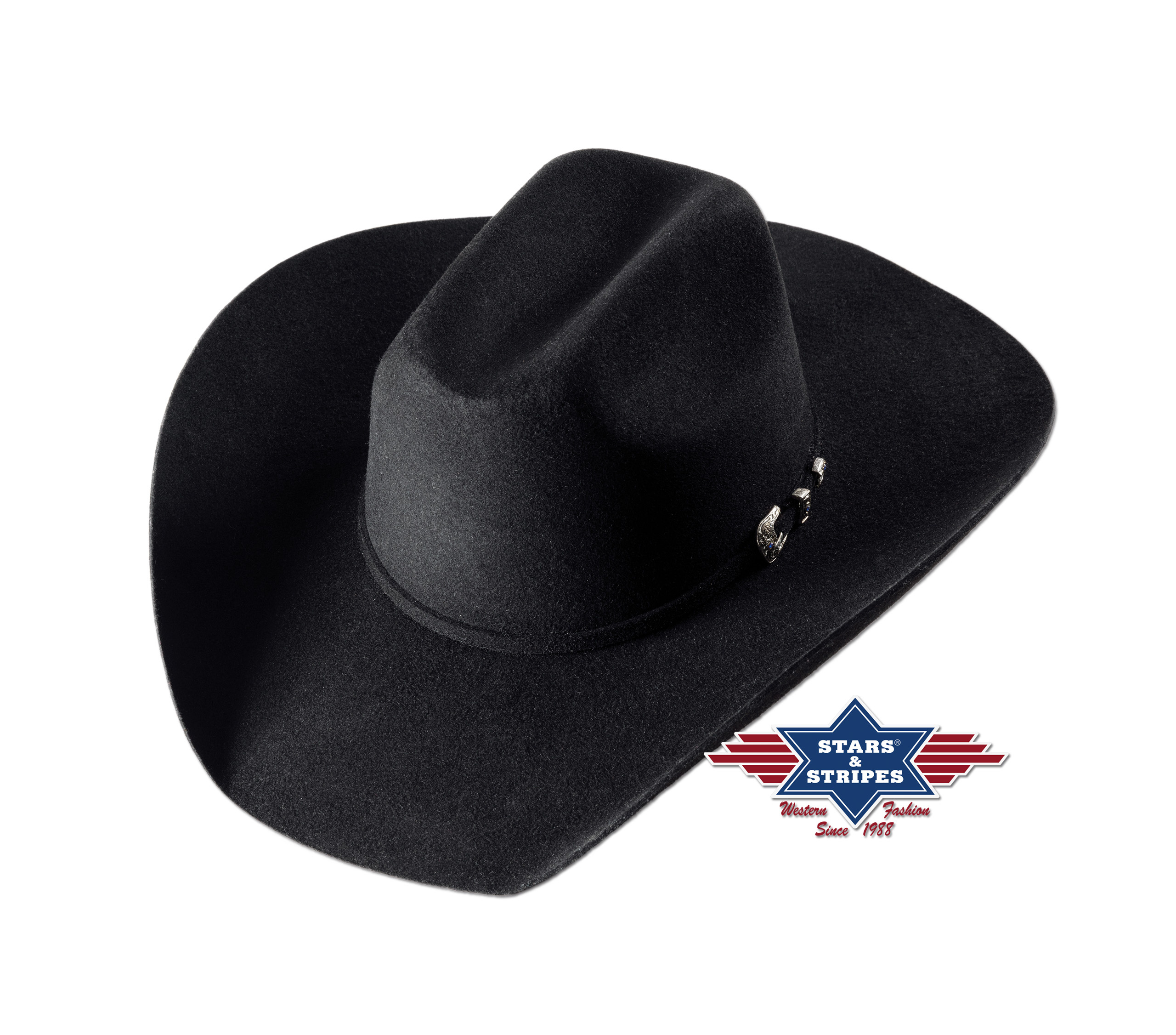 Klasický westernový klobouk zvýrazněný řemínkem s exkluzívní přezkou zdobenou drobnými azurovými kamínky. Klobouk je odolný, rozměrově stabilní a vodoodpudivý, uvnitř opatřen nastavitelným páskem.