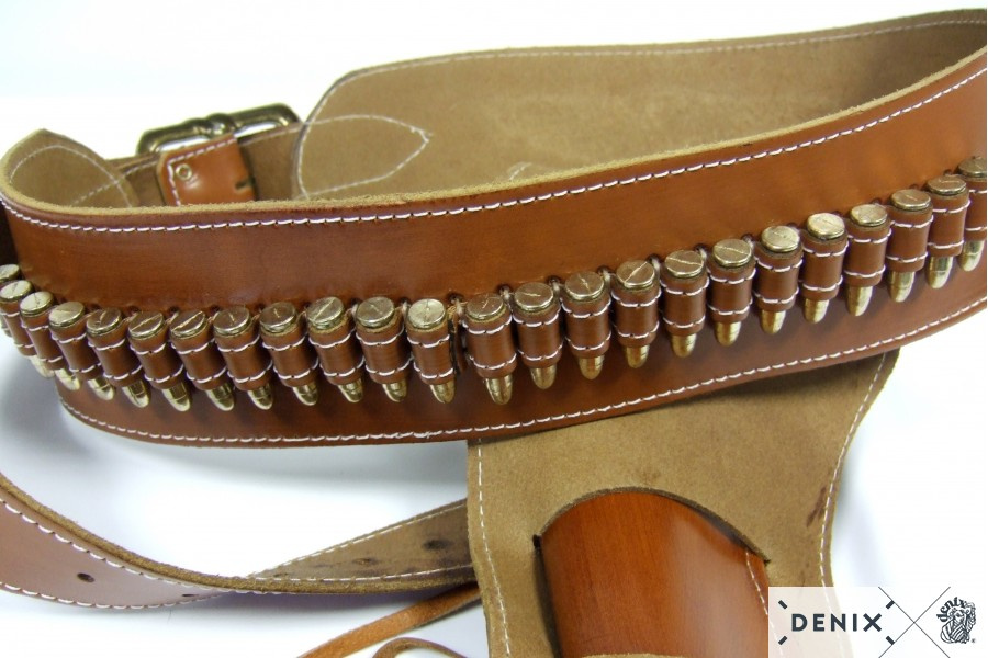 Westernový kožený holster včetně 24 nábojů zdobený šerifskou hvězdou. Výborný i jako součást maškarního kostýmu ve stylu western.