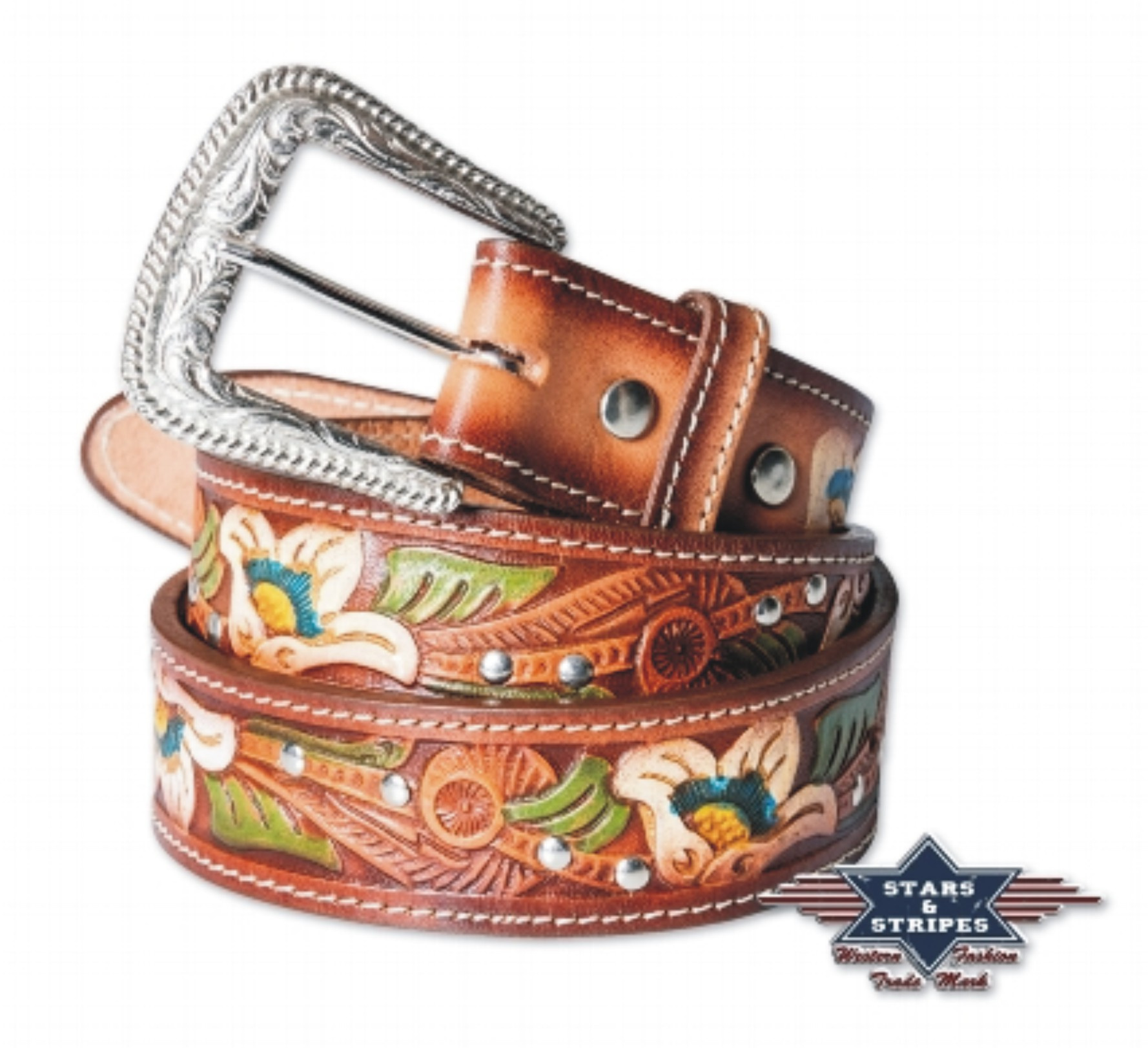 Stylový kožený westernový opasek s vyměnitelnou přezkou.