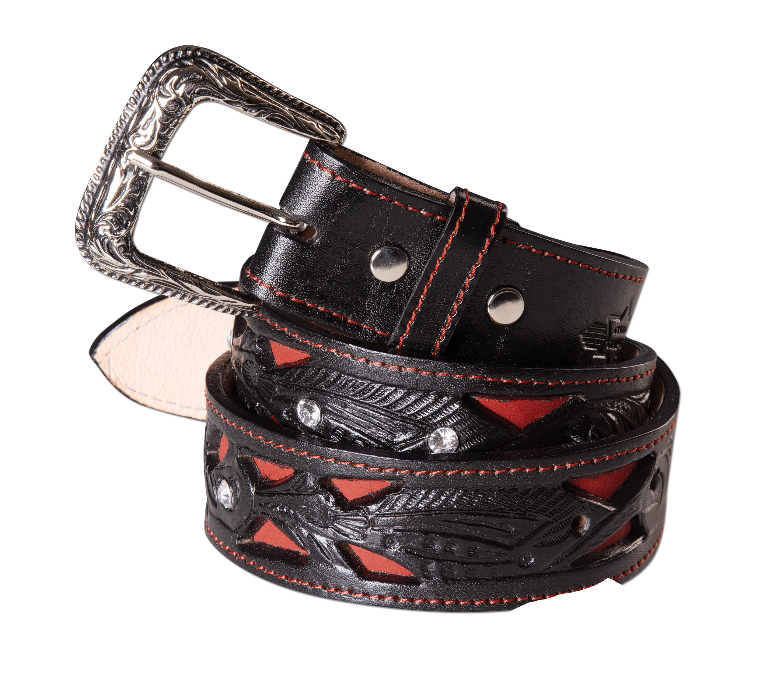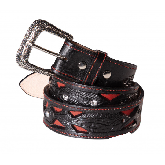 Popis produktu westernový opasek WG-106BarvavícebarevnáHlavní materiálpřírodní kůžeRobustní kožený westernový opasek se zdobením a výměnitelnou přezkou. Materiál: 100% kůže Barva: černá plus zdobení Velikosti: 76 -111 cm (měřeno po prostřední dírku)
