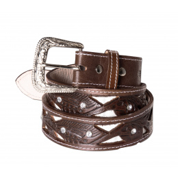 Robustní kožený westernový opasek se zdobením a výměnitelnou přezkou.