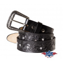Robustní kožený westernový opasek se zdobením a výměnitelnou přezkou.