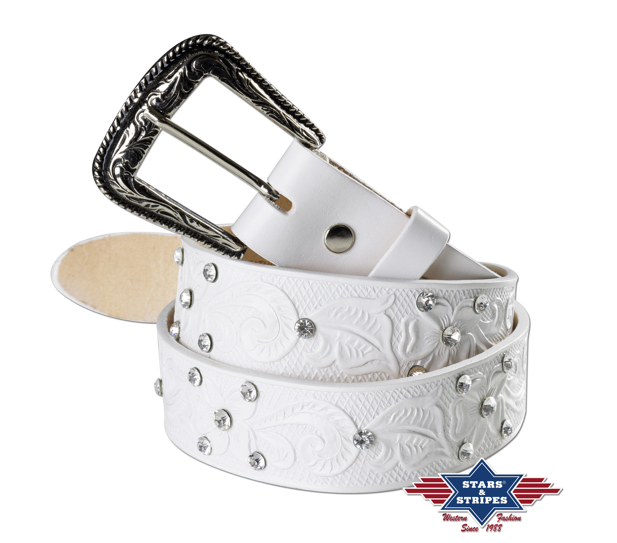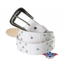Popis produktu westernový opasek WG-110BarvabíláHlavní materiálpřírodní kůžeRobustní kožený westernový opasek se zdobením a výměnitelnou přezkou. Materiál: 100% kůže Barva: bílá Velikosti: 76 -111 cm (měřeno po prostřední dírku)