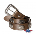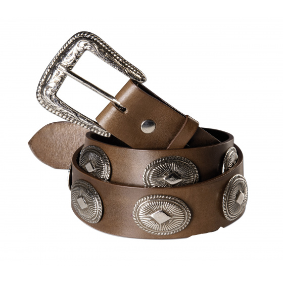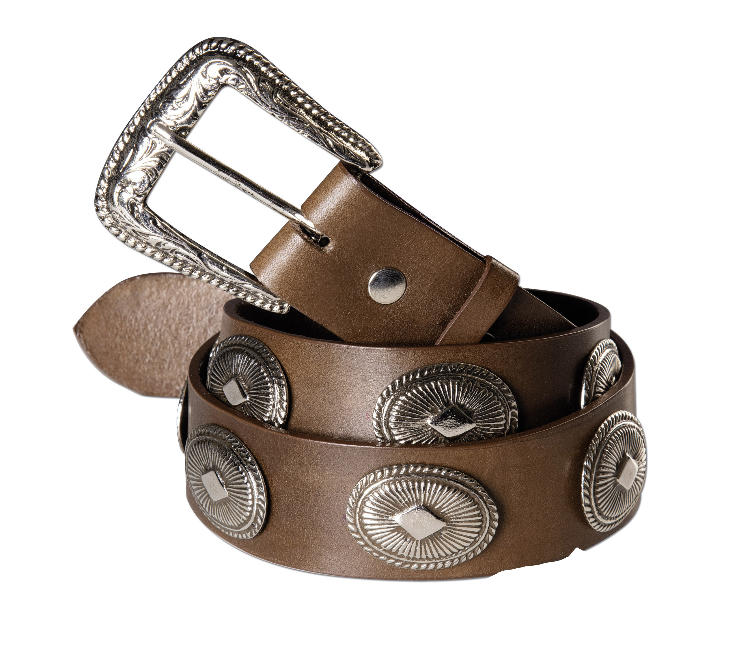 Robustní kožený westernový opasek se zdobením a výměnitelnou přezkou.