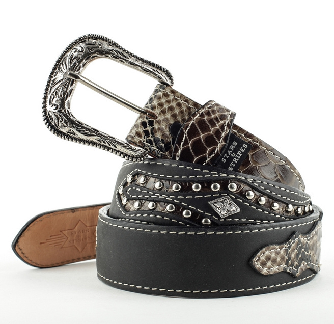 Stylový kožený westernový opasek s vyměnitelnou přezkou.