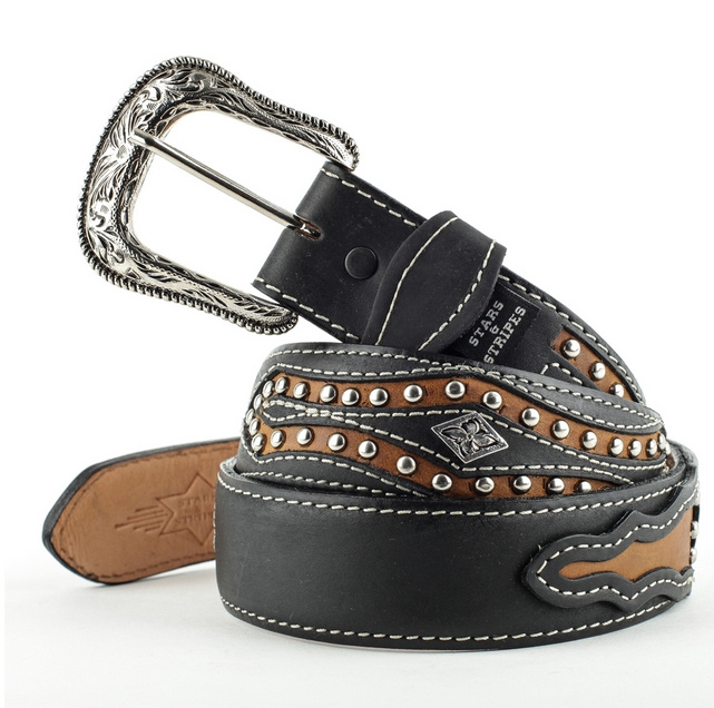 Stylový kožený westernový opasek s vyměnitelnou přezkou.