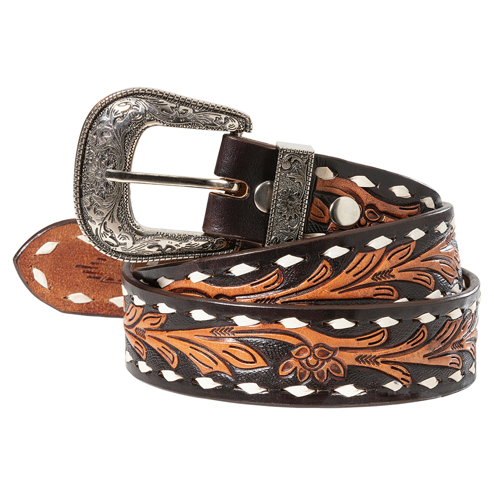 Kvalitní stylový kožený westernový opasek z hovězí kůže, ručně zdobený, s vyměnitelnou přezkou.
