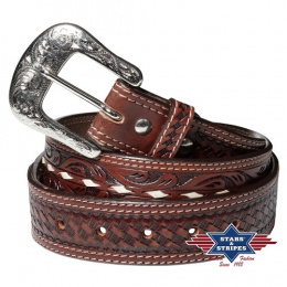 Kvalitní stylový kožený westernový opasek z hovězí kůže, ručně zdobený, s vyměnitelnou přezkou.   Více