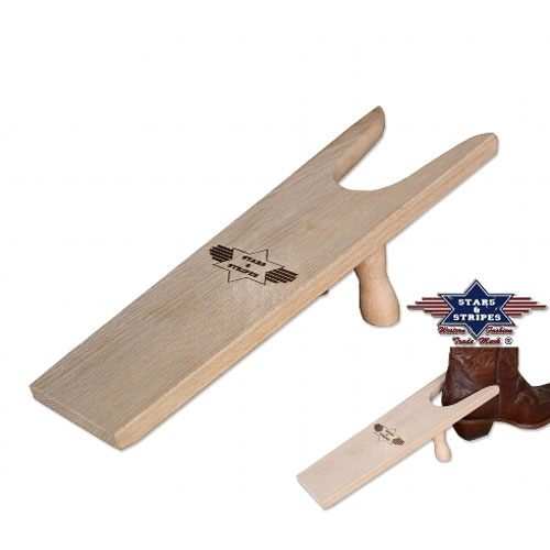 Zouvák na boty z bukového dřeva a s logem Stars and Stripes. Výborný pomocník při zouvání westernových (i jiných) bot.