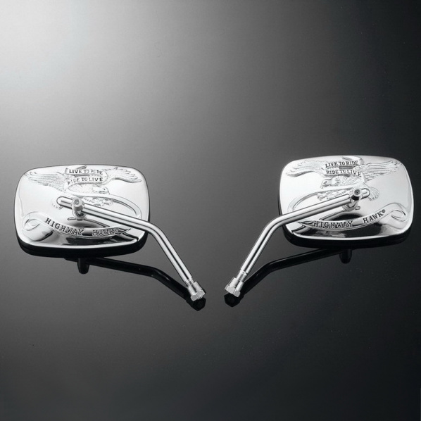 Popis produktu zrcátka LIVE TO RIDE Square (2ks)Zpětná zrcátka motocyklu HIGHWAY HAWK Live to Ride Square nastavitelná výška zrcátka SET dvou zpětných zrcátek NEMÁ homologaci pro užívání na veřejných komunikacích, pouze na uzavřených okruzích univerzální Provedení: pro motocykly Yamaha (opačný závit na pravém zrcátku) Povrchová úprava: chromBalení: 2 ks