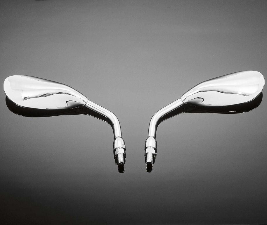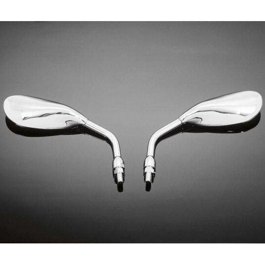 Zrcátka SPORTY, oválné, materiál: slitina/PVC, povrch: chrom. Určeno pro montáž na všechny typy japonských motocyklů. Pro montáž na motocykl HD použijte adaptér. Balení: 2 kusy + redukce závitu pro montáž na pravou stranu u motocyklů YAMAHA. Rozměr zrcátka cca 13 x 5 cm, nemá homologaci.