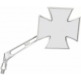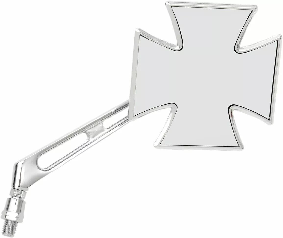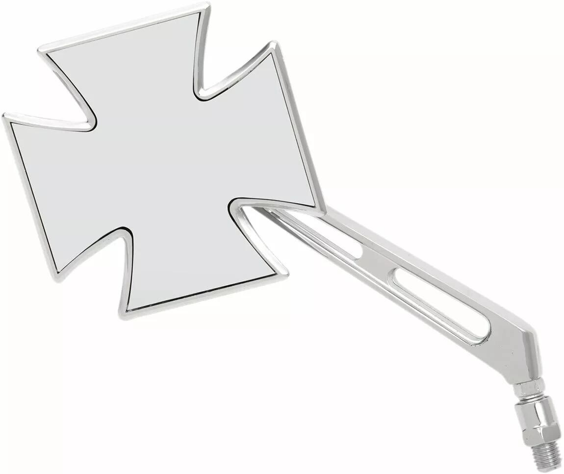 Skvěle vypadající zrcátko ve tvaru maltézského kříže se stylovou nožičkou. Varianta pro pravou nebo levou stranu motocyklu. S příslušným šroubem (redukcí) lze použít na jakýkoli typ motocyklu.