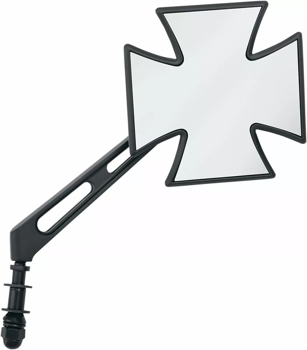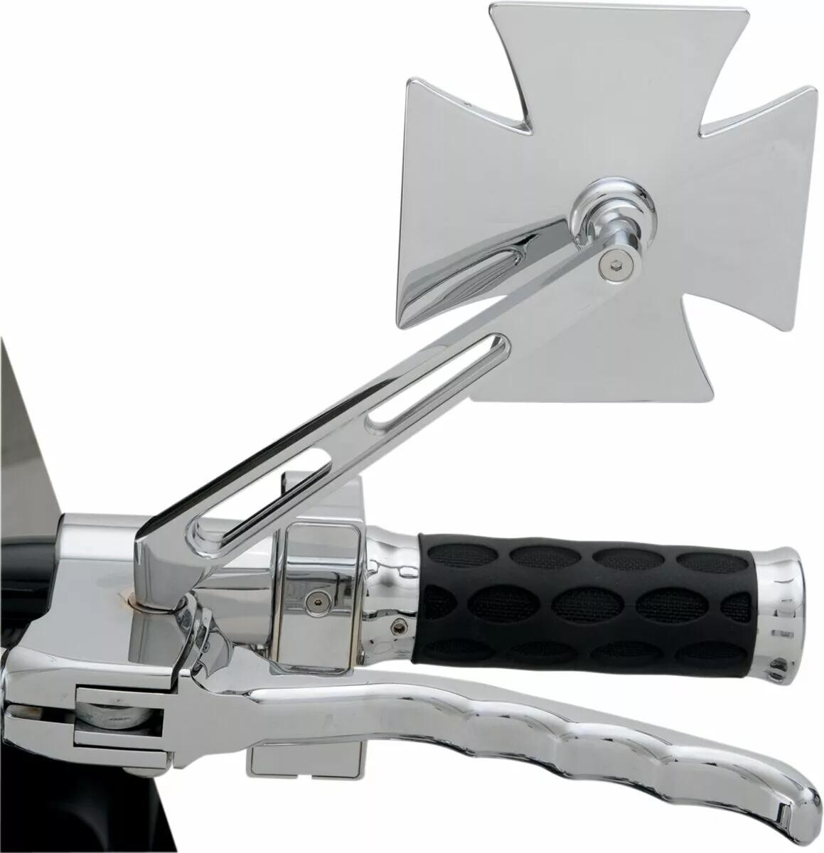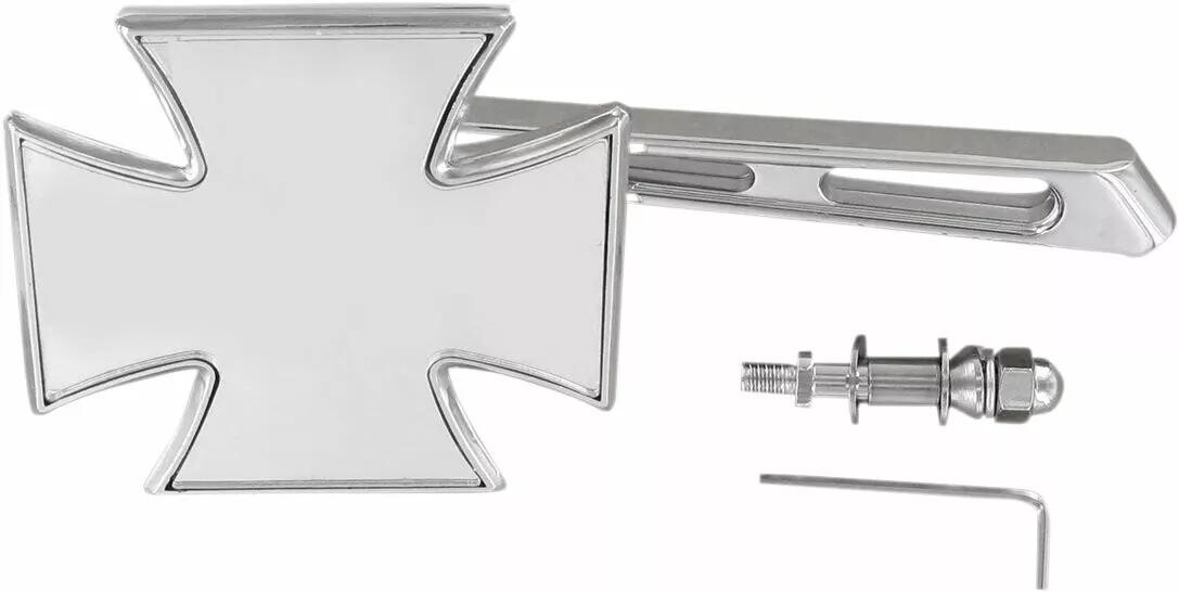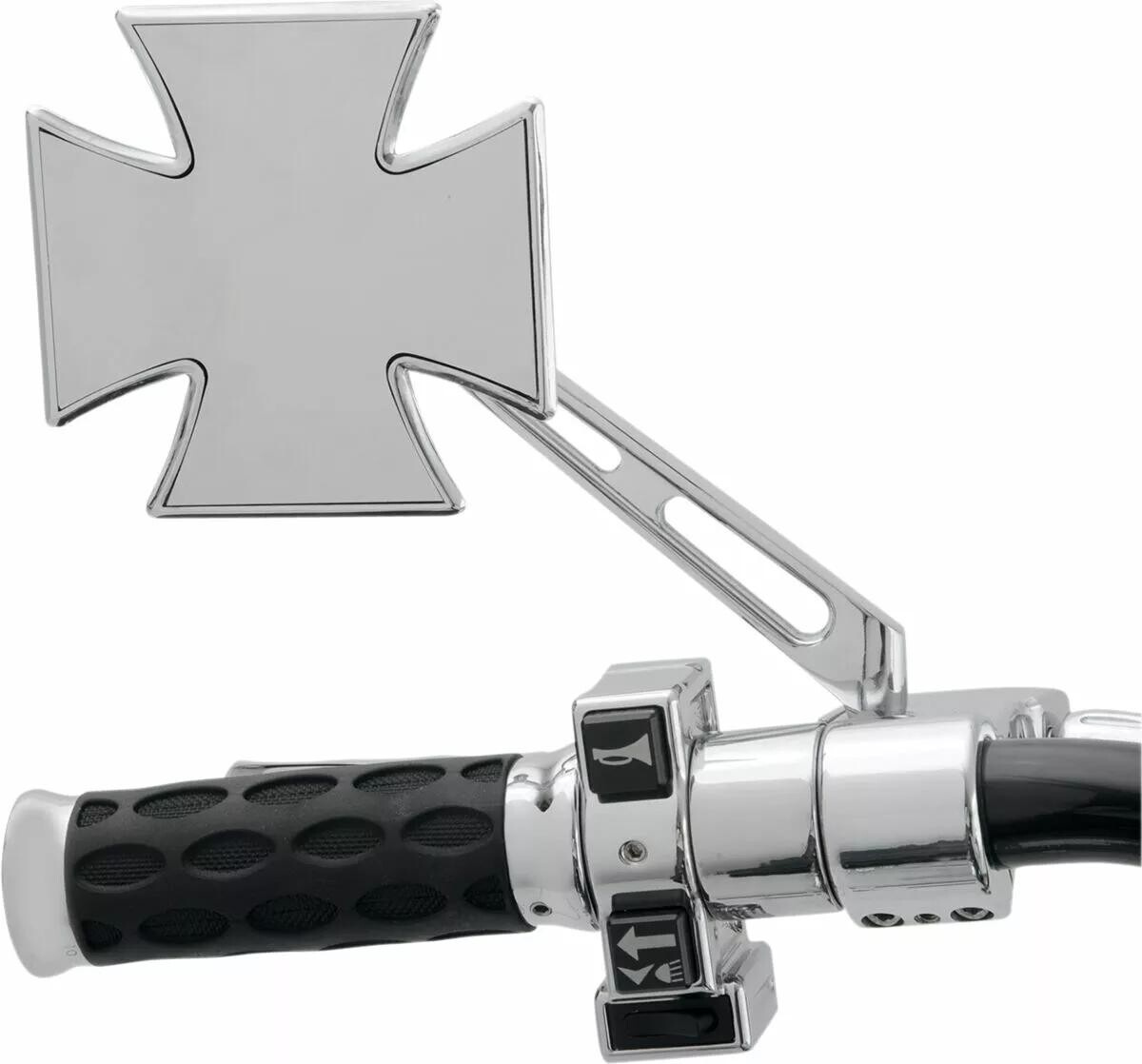 Skvěle vypadající zrcátko ve tvaru maltézského kříže se stylovou nožičkou. Lze použít na pravou i levou stranu motocyklu. S příslušným šroubem (redukcí) lze použít na jakýkoli typ motocyklu.